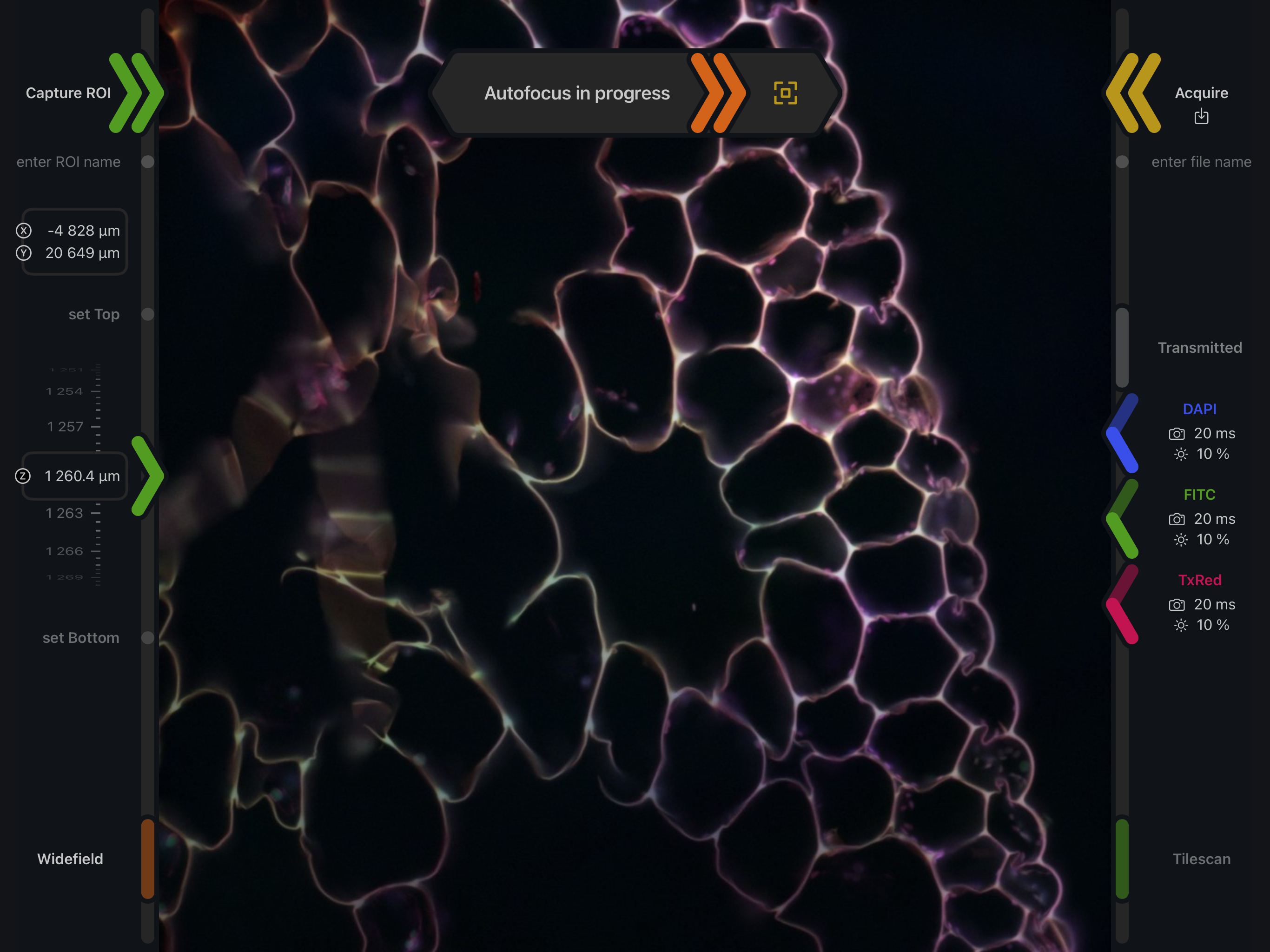 Unity iOS provides all the functionality required for the set-up, control and review of confocal and widefield imaging experiments in a quick and easy to use Ipad application.